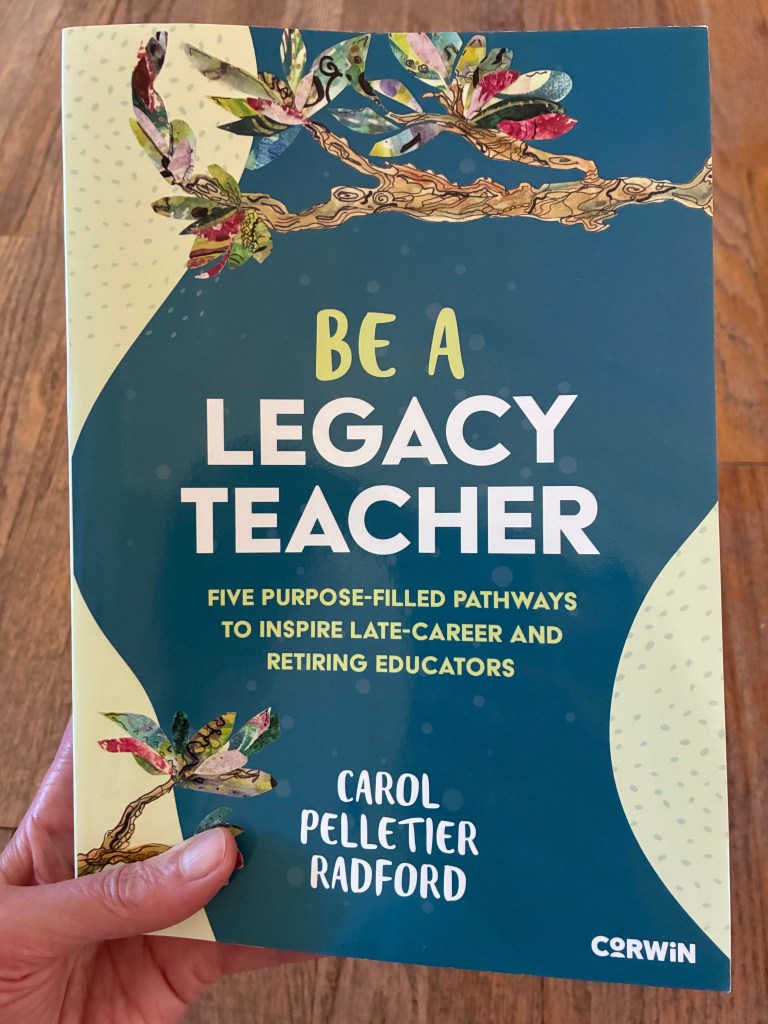 A while back I shared that one of my poems was going to be included in a book for retired educators. Well, I received a copy in the mail and here it is! “Be a Legacy Teacher: Five Purpose-filled Pathways to Inspire Late-Career and Retiring Educators” by Carol Pelletier Radford. This is a beautiful experiential resource of guidance, encouragement, reflection and creativity – honoring the lifelong pathways of teachers in a spectrum of forms. And I’m honored to be included. Please check in out and share with the teachers in your life: https://mentoringinaction.com/books/